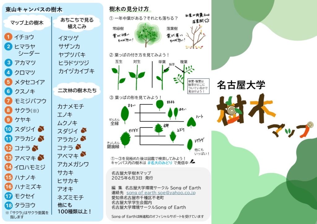 「樹木マッププロジェクトのXを新たに開設しました!名大の樹木の魅力や樹木マップPJの活動を発信していきます。フォローよろしくお願いします! Instagramでは今まで通りのアカウント song_of_earth_1994でハイライト『名大のみどり』で樹木の魅力を発信していきます。こちらもぜひご覧ください!」