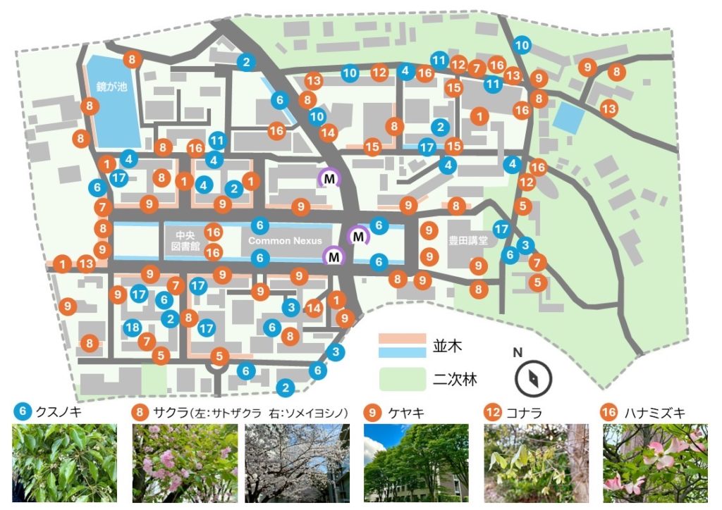 東海大学国立機構が発行している環境報告書の活動の一環として、名古屋大学東山キャンパス内の樹木をマッピングしています。